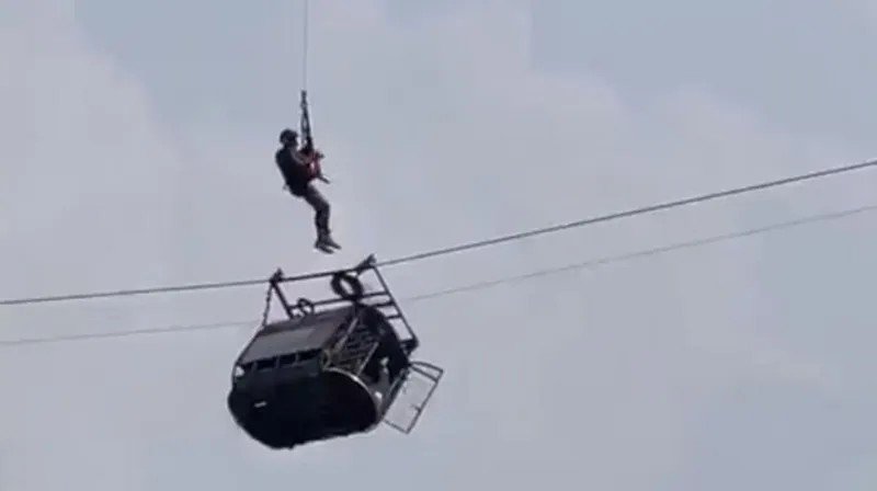 وحوصر الطلاب ومعلمهم في مقصورة “تلفريك” أمس الثلاثاء معلقة على ارتفاع كبير في الجو فوق وادٍ عميق بمنطقة جبلية نائية، بعد انقطاع أحد السلكين الحاملين لها.
